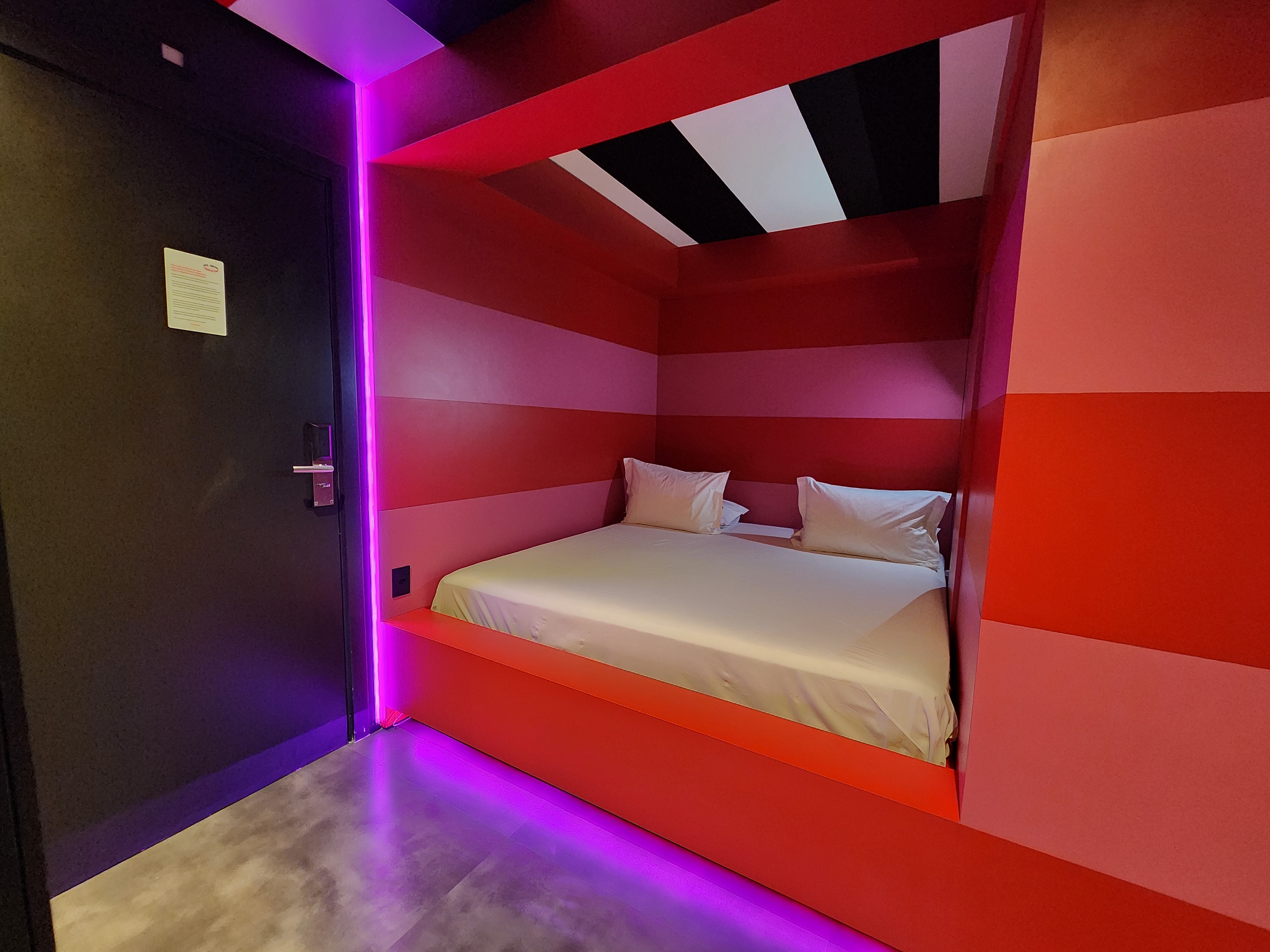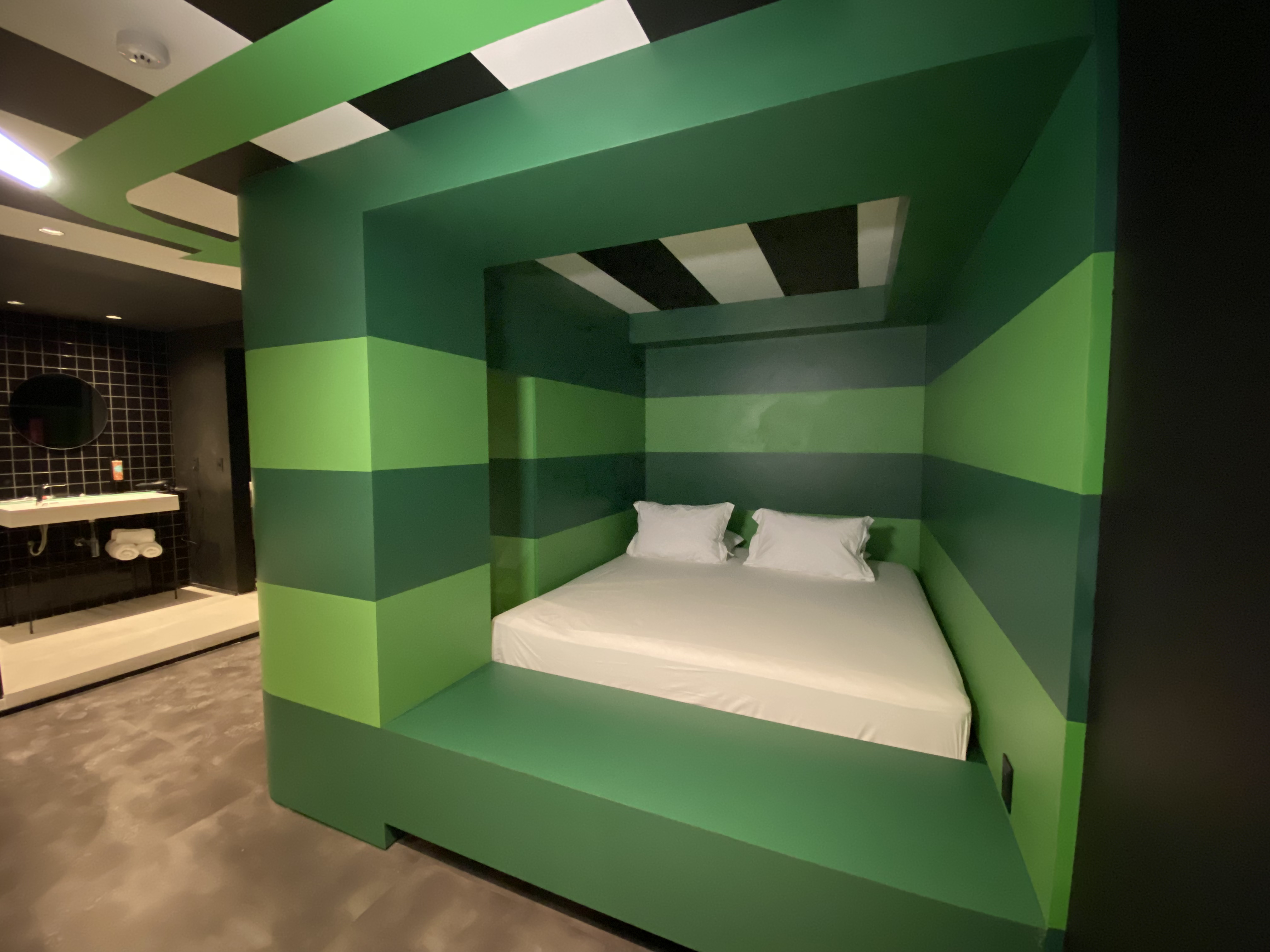 A Suíte Cubo é a escolha perfeita para quem busca uma estadia vibrante e cheia de energia. Com uma cama king size super confortável e uma decoração artística exclusiva, esta suíte promete momentos inesquecíveis. Reserve agora e crie memórias divertidas!